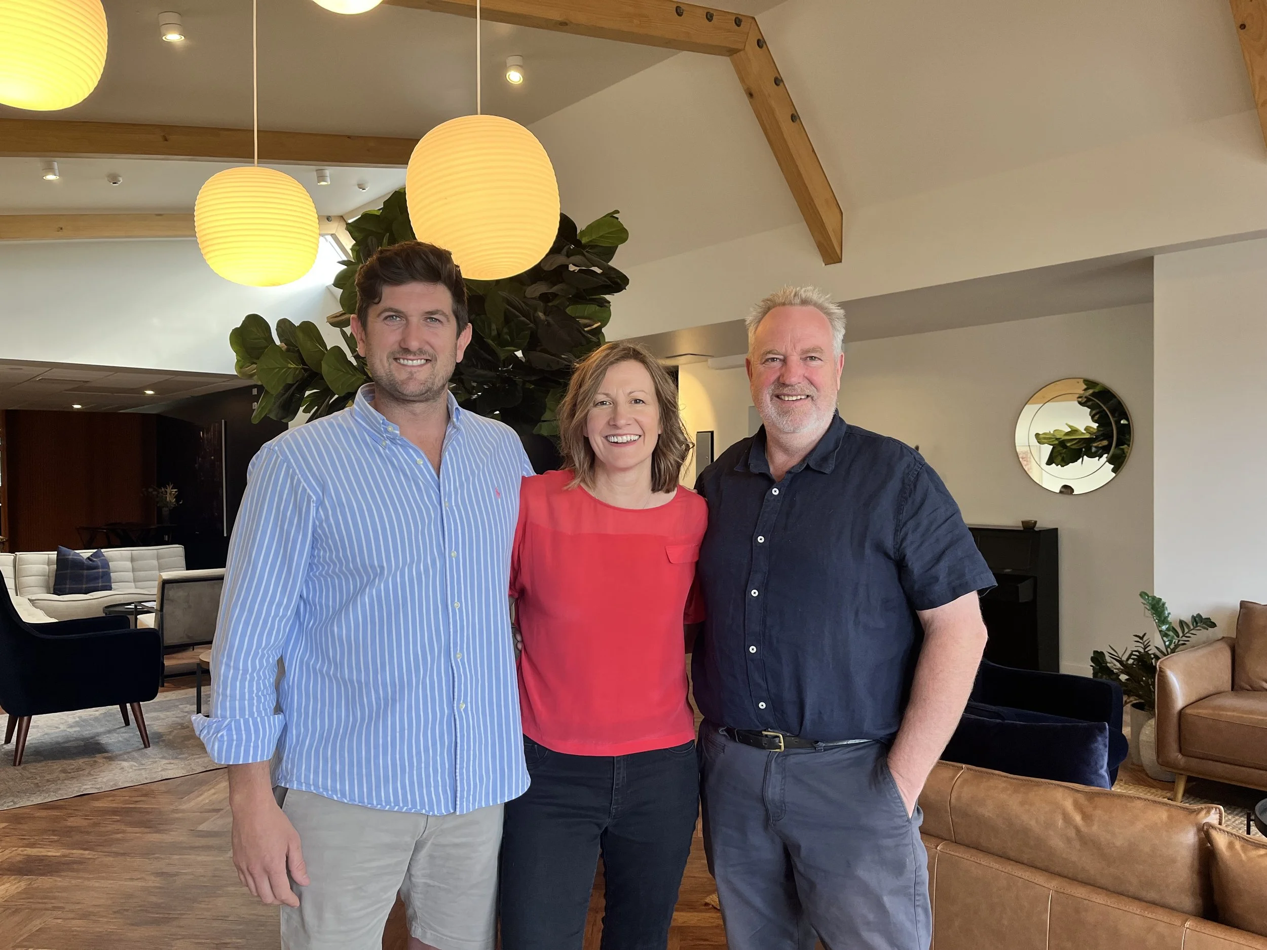 (Photo L to R: Paddy Kluts, Mountain Club, with Anna Dorsey and John Glover from Headlight.)